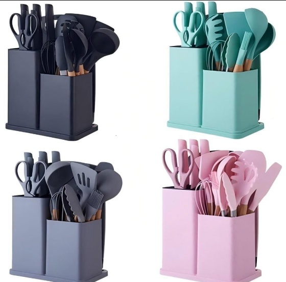 O MaxiKit de Utensílios de Cozinha 19 Peças é o upgrade definitivo para quem busca qualidade profissional, segurança e beleza na hora de cozinhar. Projetado para atender todas as suas necessidades, este conjunto combina a performance do silicone premium com a precisão do aço inoxidável e o charme dos cabos de madeira.